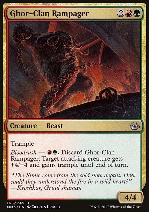 Trample Bloodrush — {R}{G}, Discard Ghor-Clan Rampager: Target attacking creature gets +4/+4 and gains trample until end of turn.