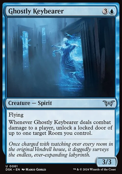 Flying Whenever Ghostly Keybearer deals combat damage to a player, unlock a locked door of up to one target Room you control.