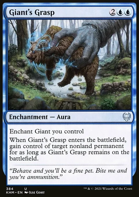 Enchant Giant you control When this Aura enters, gain control of target nonland permanent for as long as this Aura remains on the battlefield.