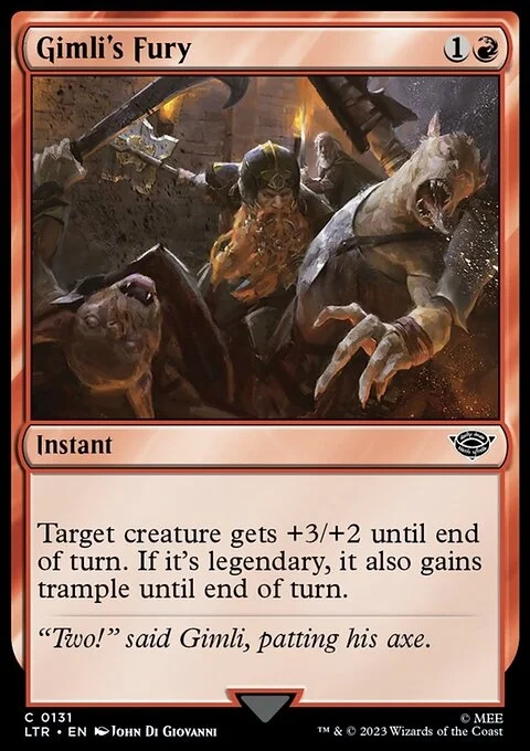 Target creature gets +3/+2 until end of turn. If it's legendary, it also gains trample until end of turn.