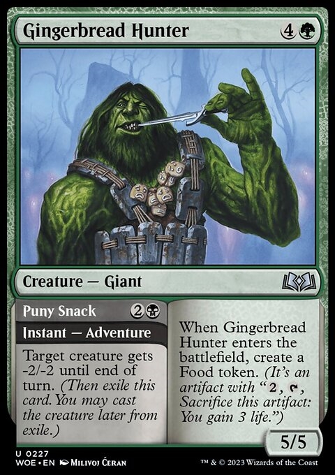 When Gingerbread Hunter enters the battlefield, create a Food token. (It's an artifact with "{2}, {T}, Sacrifice this artifact: You gain 3 life.")