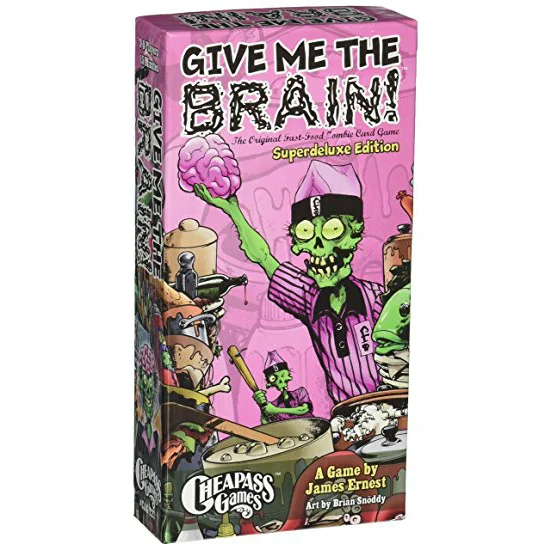 Working in fast-food is hell. All the employees are zombies, and you can't find a single brain amongst them. Except for the brain part - there is, in fact, one brain - that's the premise of Give Me the Brain!, a card game in which players take on the roles of zombies in a fast-food restaurant in hell. They all have to complete a number of tasks before leaving work, and the work keeps piling on. Even worse, some of the tasks require basic intelligence and there's only one brain to go around.