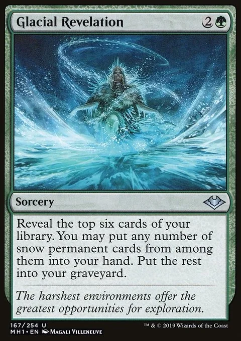 Reveal the top six cards of your library. You may put any number of snow permanent cards from among them into your hand. Put the rest into your graveyard.