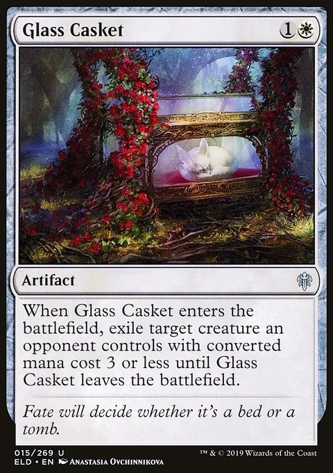 When Glass Casket enters the battlefield, exile target creature an opponent controls with converted mana cost 3 or less until Glass Casket leaves the battlefield.