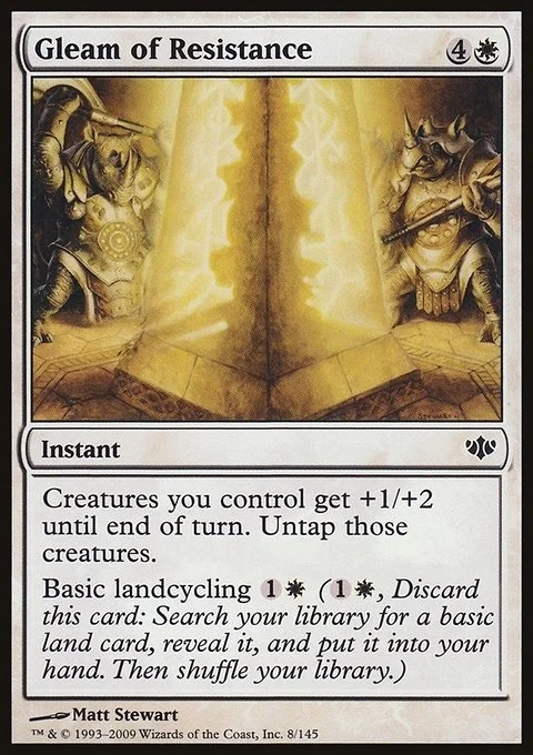Creatures you control get +1/+2 until end of turn. Untap those creatures. Basic landcycling {1}{W} ({1}{W}, Discard this card: Search your library for a basic land card, reveal it, put it into your hand, then shuffle.)