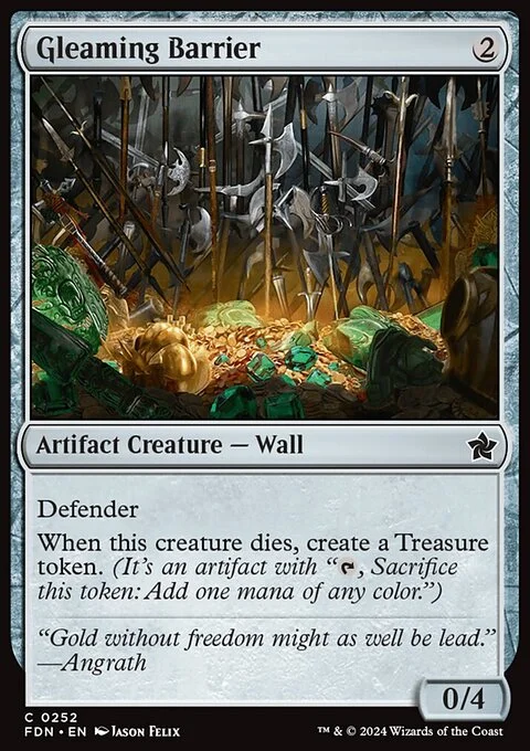 Defender When this creature dies, create a Treasure token. (It's an artifact with "{T}, Sacrifice this token: Add one mana of any color.")
