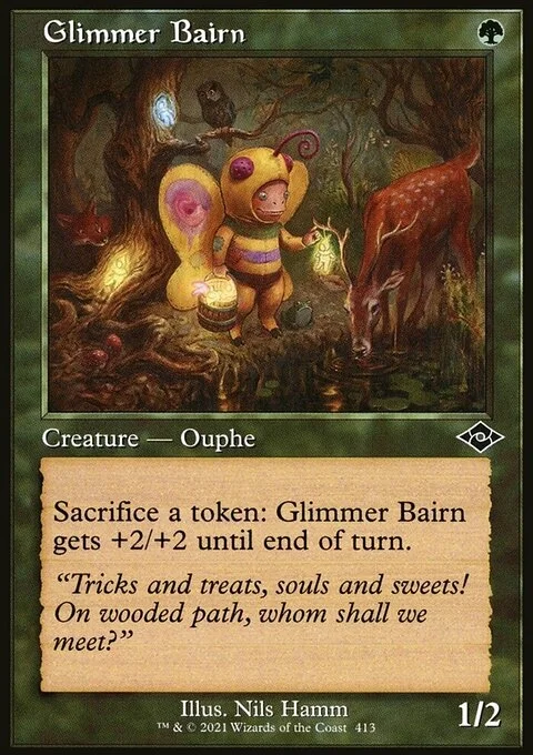 Sacrifice a token: Glimmer Bairn gets +2/+2 until end of turn.