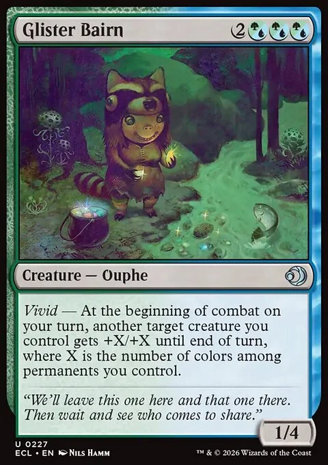 Vivid — At the beginning of combat on your turn, another target creature you control gets +X/+X until end of turn, where X is the number of colors among permanents you control.