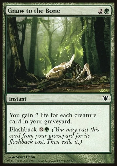 You gain 2 life for each creature card in your graveyard. Flashback {2}{G} (You may cast this card from your graveyard for its flashback cost. Then exile it.)