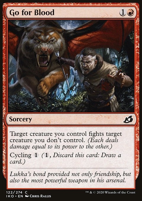 Target creature you control fights target creature you don't control. (Each deals damage equal to its power to the other.) Cycling {1} ({1}, Discard this card: Draw a card.)