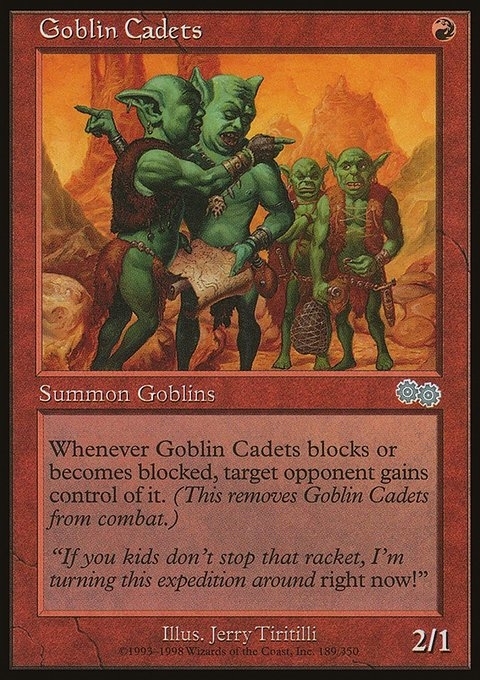 Whenever this creature blocks or becomes blocked, target opponent gains control of it. (This removes this creature from combat.)