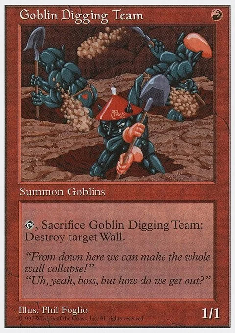 {T}, Sacrifice Goblin Digging Team: Destroy target Wall.