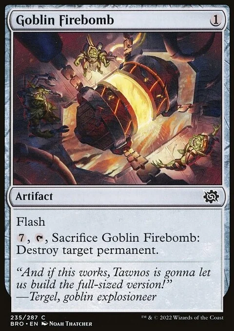Flash {7}, {T}, Sacrifice this artifact: Destroy target permanent.