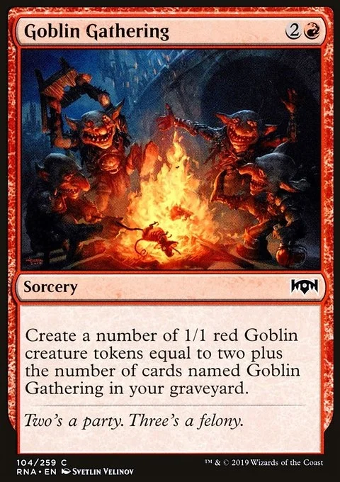 Create a number of 1/1 red Goblin creature tokens equal to two plus the number of cards named Goblin Gathering in your graveyard.