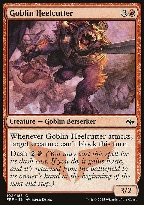 Whenever Goblin Heelcutter attacks, target creature can't block this turn.