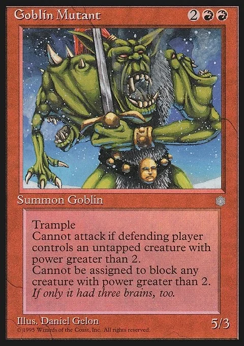 TrampleCannot attack if defending player controls an untapped creature with power greater than 2. Cannot be assigned to block any creature with power greater than 2.