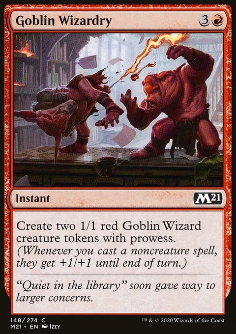 Create two 1/1 red Goblin Wizard creature tokens with prowess. (Whenever you cast a noncreature spell, they get +1/+1 until end of turn.)
