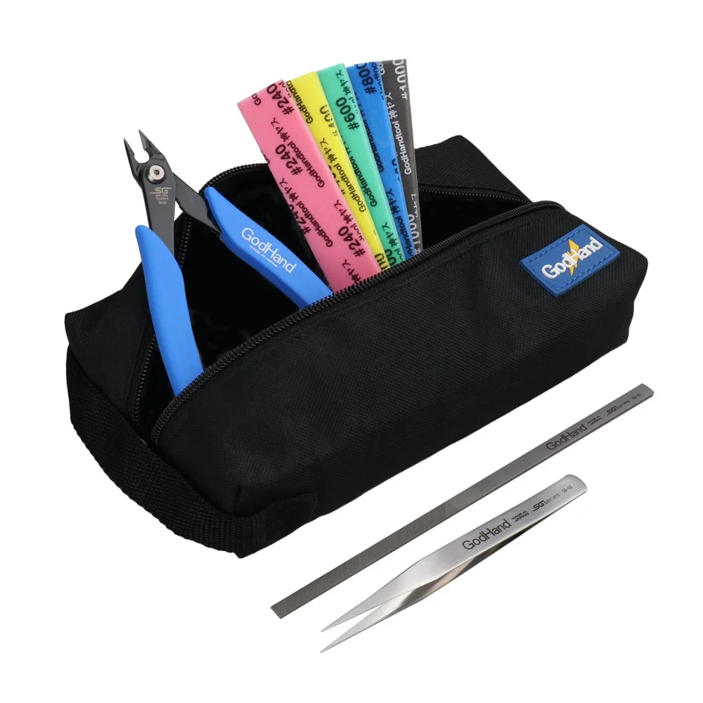 This product contains four basic tools that are useful for plastic model making, allowing you to complete the entire process from cutting to finishing. The high-quality tools are easy to use for both beginners and veterans, and their durability means they can be used for a long time. Comes with a cloth tool case!