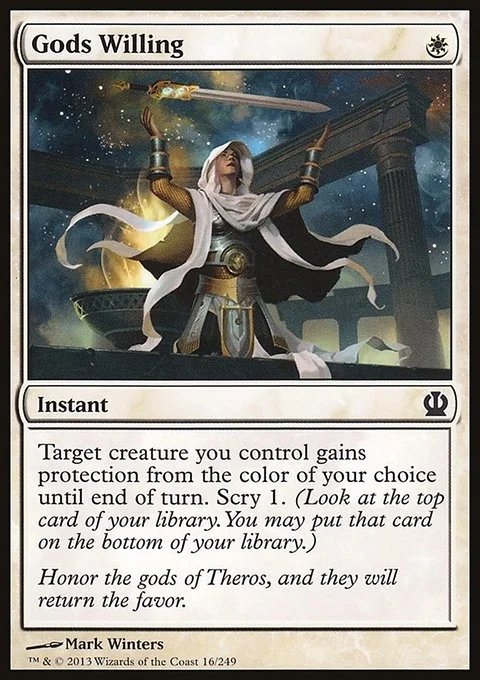 Target creature you control gains protection from the color of your choice until end of turn. (It can't be blocked, targeted, dealt damage, enchanted, or equipped by anything of that color.)