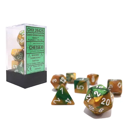 Gold-Green with White Gemini Polyhedral 7-Die Set Chessex CHX26425