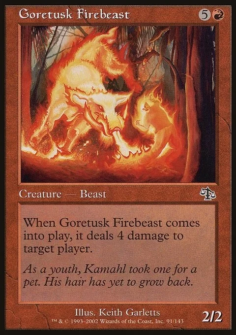 When Goretusk Firebeast enters, it deals 4 damage to target player or planeswalker.