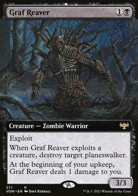 Exploit (When this creature enters, you may sacrifice a creature.) When this creature exploits a creature, destroy target planeswalker. At the beginning of your upkeep, this creature deals 1 damage to you.