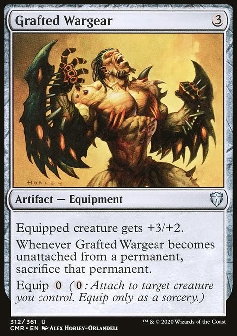 Equipped creature gets +3/+2. Whenever Grafted Wargear becomes unattached from a permanent, sacrifice that permanent. Equip {0} ({0}: Attach to target creature you control. Equip only as a sorcery.)