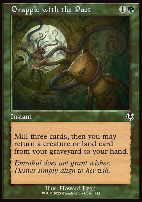 Mill three cards, then you may return a creature or land card from your graveyard to your hand. (To mill three cards, put the top three cards of your library into your graveyard.)