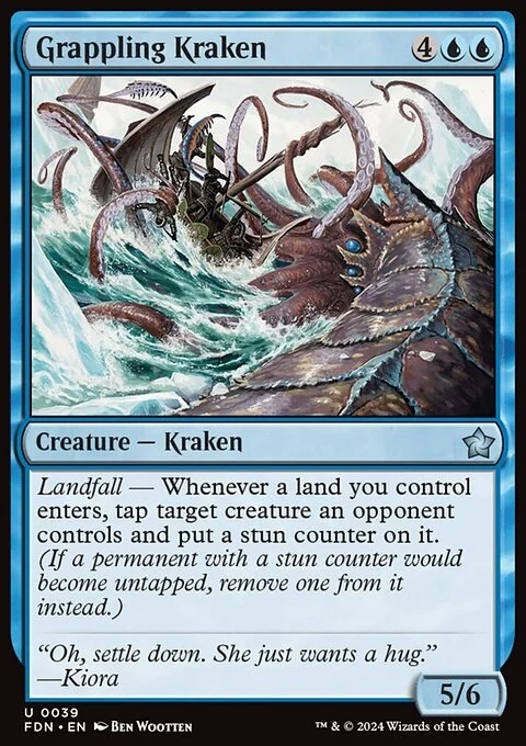 Landfall — Whenever a land you control enters, tap target creature an opponent controls and put a stun counter on it. (If a permanent with a stun counter would become untapped, remove one from it instead.)