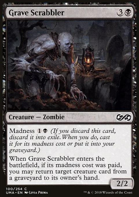 When Grave Scrabbler enters the battlefield, if its madness cost was paid, you may return target creature card from a graveyard to its owner's hand.