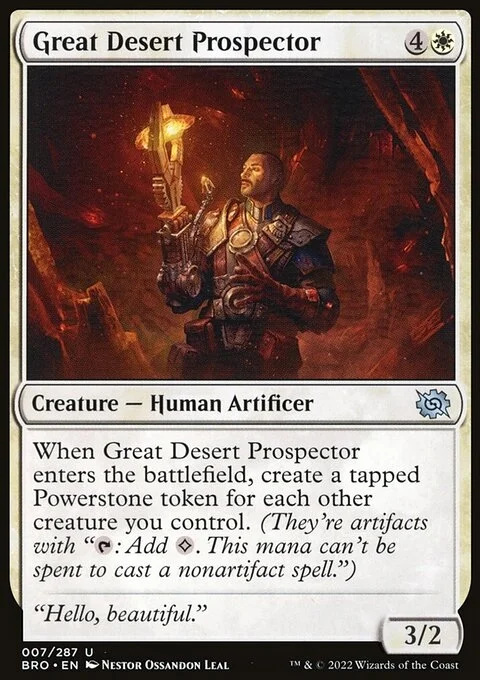When Great Desert Prospector enters the battlefield, create a tapped Powerstone token for each other creature you control. (The tokens are artifacts with "{T}: Add {C}. This mana can't be spent to cast a nonartifact spell.")