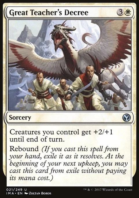 Creatures you control get +2/+1 until end of turn. Rebound (If you cast this spell from your hand, exile it as it resolves. At the beginning of your next upkeep, you may cast this card from exile without paying its mana cost.)