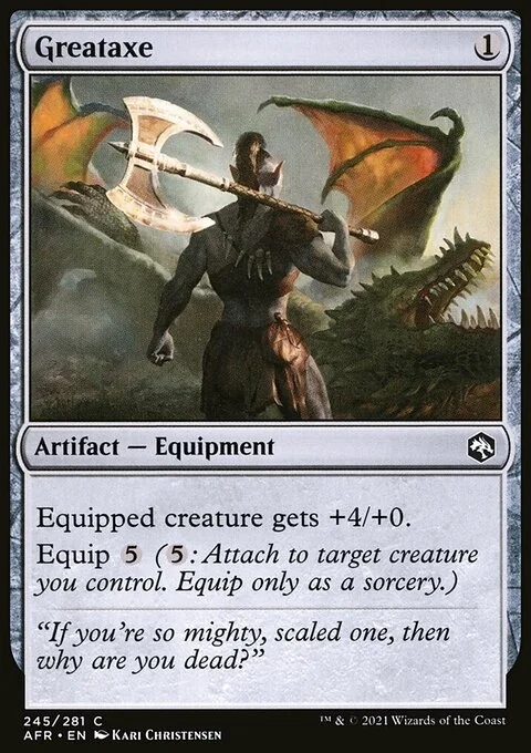 Equipped creature gets +4/+0. Equip {5} ({5}: Attach to target creature you control. Equip only as a sorcery.)