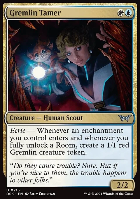 Eerie — Whenever an enchantment you control enters and whenever you fully unlock a Room, create a 1/1 red Gremlin creature token.