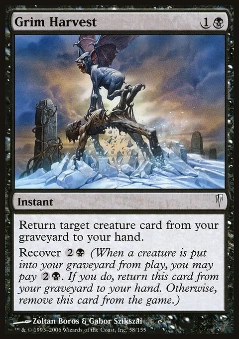 Recover {2}{B} (When a creature is put into your graveyard from the battlefield, you may pay {2}{B}. If you do, return this card from your graveyard to your hand. Otherwise, exile this card.)