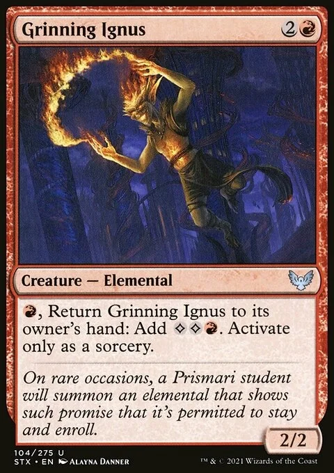 {R}, Return Grinning Ignus to its owner's hand: Add {C}{C}{R}. Activate only as a sorcery.