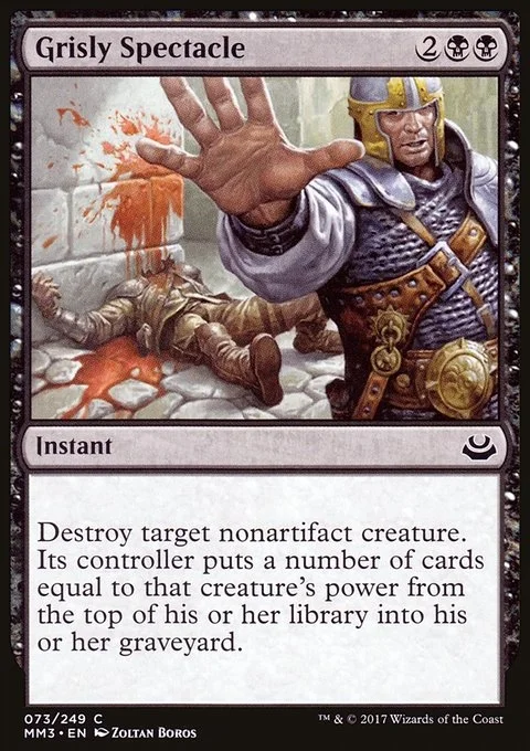 Destroy target nonartifact creature. Its controller mills cards equal to that creature's power.