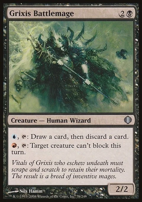 {U}, {T}: Draw a card, then discard a card. {R}, {T}: Target creature can't block this turn.