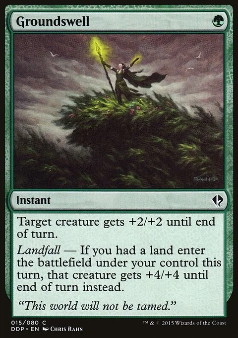 Target creature gets +2/+2 until end of turn. Landfall — If you had a land enter the battlefield under your control this turn, that creature gets +4/+4 until end of turn instead.