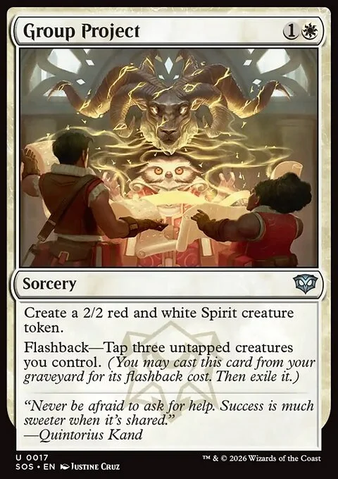 Create a 2/2 red and white Spirit creature token. Flashback—Tap three untapped creatures you control. (You may cast this card from your graveyard for its flashback cost. Then exile it.)
