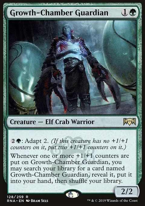 Whenever one or more +1/+1 counters are put on Growth-Chamber Guardian, you may search your library for a card named Growth-Chamber Guardian, reveal it, put it into your hand, then shuffle.