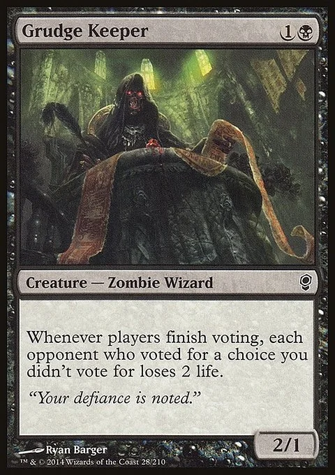Whenever players finish voting, each opponent who voted for a choice you didn't vote for loses 2 life.