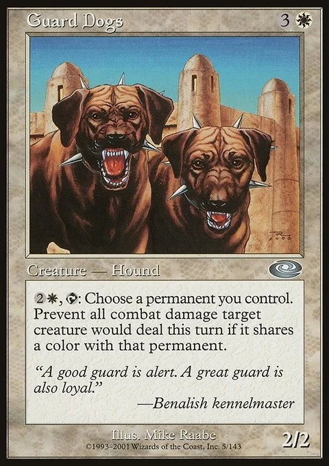 2W, T: Choose a permanent you control. Prevent all combat damage target creature would deal this turn if it shares a color with that permanent.