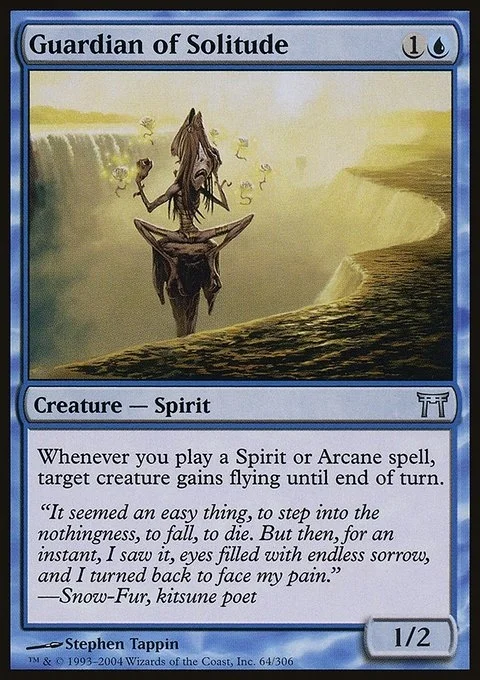 Whenever you cast a Spirit or Arcane spell, target creature gains flying until end of turn.