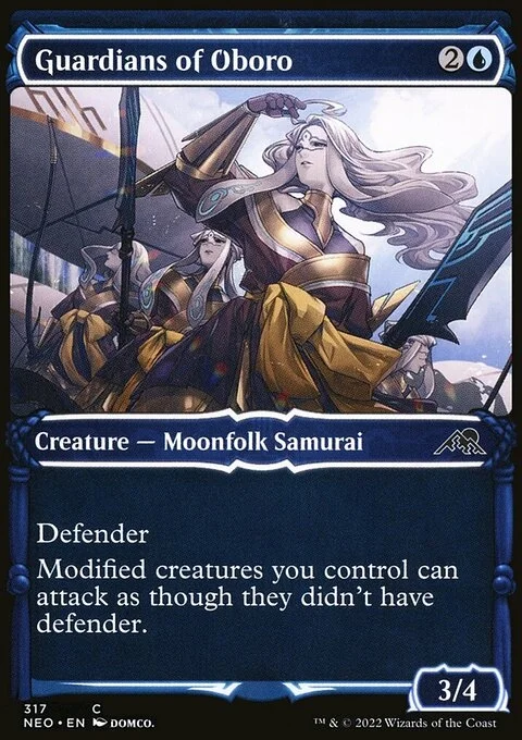 Defender Modified creatures you control can attack as though they didn't have defender. (Equipment, Auras you control, and counters are modifications.)