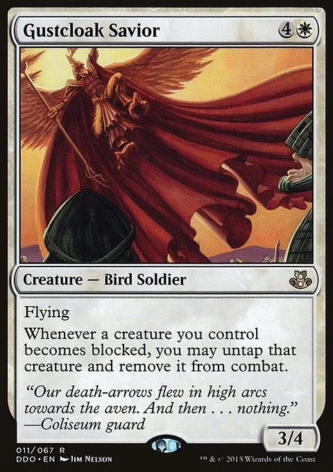 Flying Whenever a creature you control becomes blocked, you may untap that creature and remove it from combat.