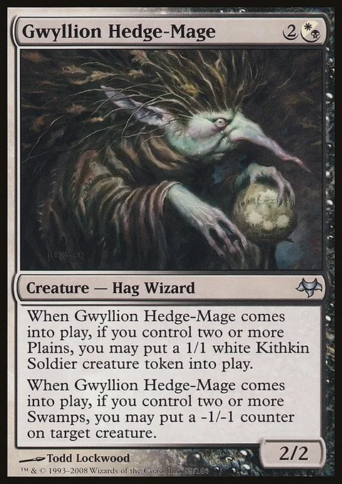 When Gwyllion Hedge-Mage enters the battlefield, if you control two or more Plains, you may create a 1/1 white Kithkin Soldier creature token.