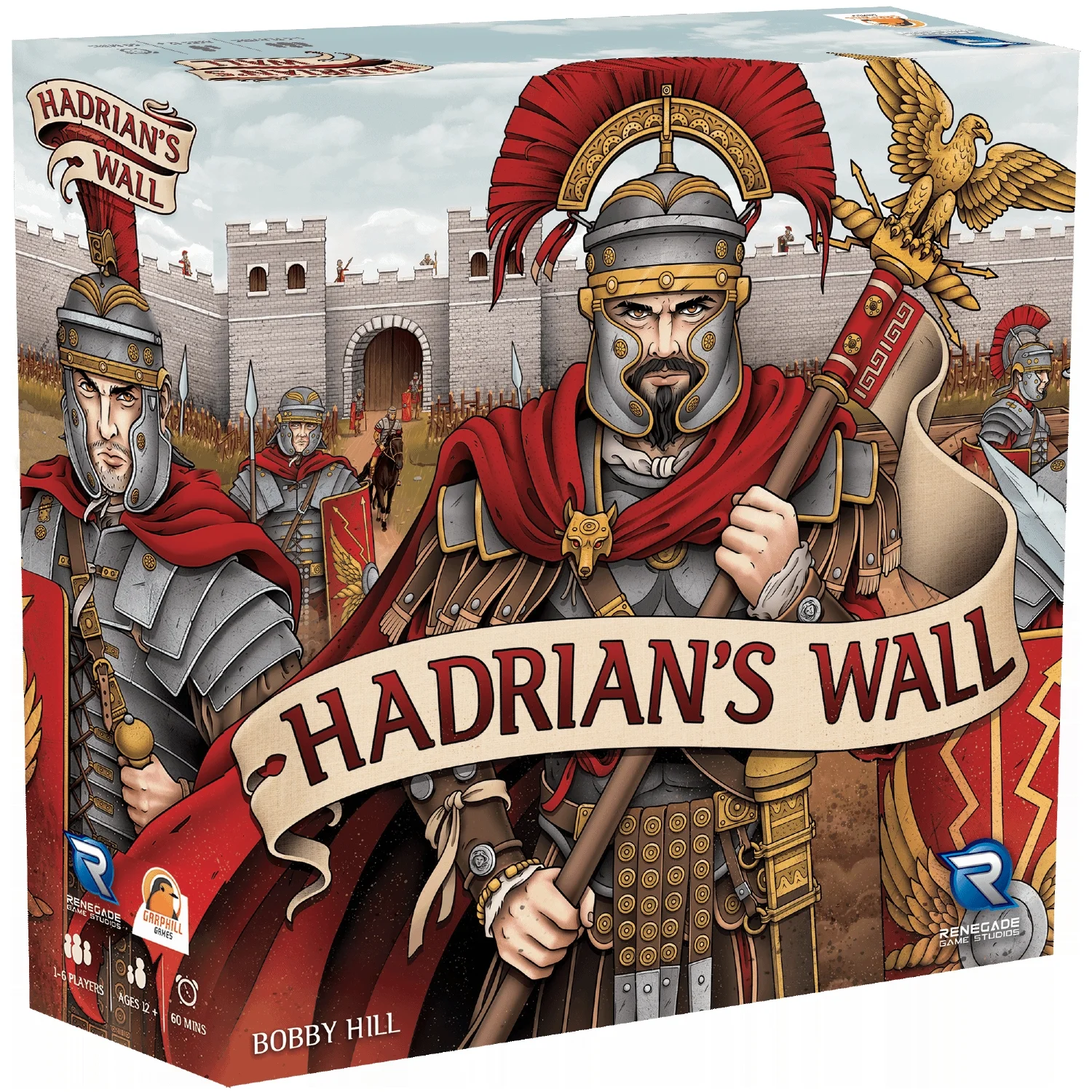 In Hadrian's Wall players take on the role of a Roman General, placed in charge of the construction of a milecastle and bordering wall. Over 6 years (rounds), players will construct their fort and wall, man the defences, and attract civilians by building services and providing entertainment - all while defending the honour of the Roman Empire from the warring Picts. The player that can accumulate the most Renown, Piety, Valour and Discipline, whilst avoiding Disdain, will prove to the Emperor they are the model Roman citizen and be crowned Legatus Legionis!