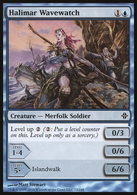 Level up {2} ({2}: Put a level counter on this. Level up only as a sorcery.) LEVEL 1-4 0/6 LEVEL 5+ 6/6 Islandwalk (This creature can't be blocked as long as defending player controls an Island.)