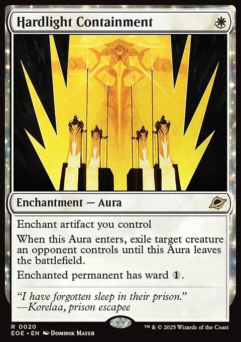 Enchant artifact you control When this Aura enters, exile target creature an opponent controls until this Aura leaves the battlefield. Enchanted permanent has ward {1}.